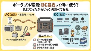 ポータブル電源のDC出力って何に使う?初心者の私が調べてわかった活用例と選び方をやさしく解説します。