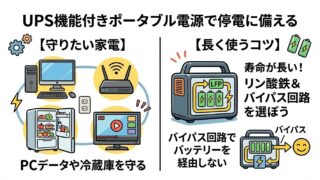 ポータブル電源のUPS機能は本当に使える?寿命への影響やパススルーの仕組み、後悔しない選び方を初心者向けに解説。