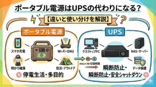 ポータブル電源はUPSの代わりになる?違いや役割、家庭の停電対策でどちらが向いているのかを初心者向けにわかりやすく解説。代用できるケース・できないケースも紹介します。