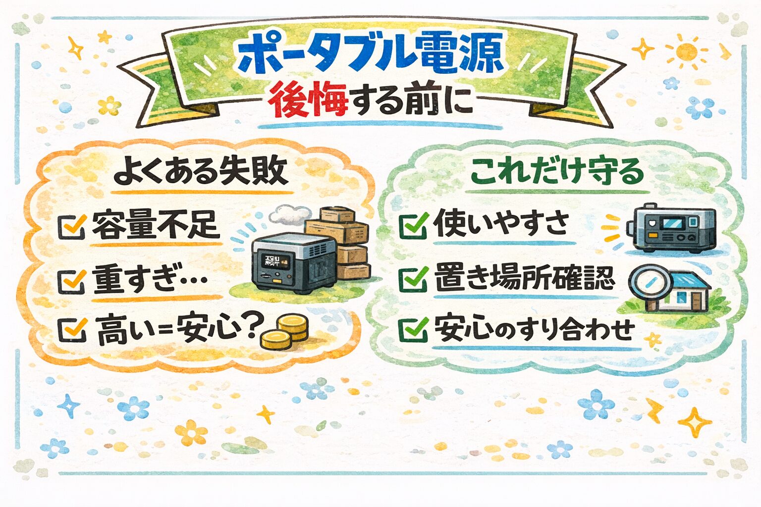 「ポータブル電源で後悔しやすいポイント」と