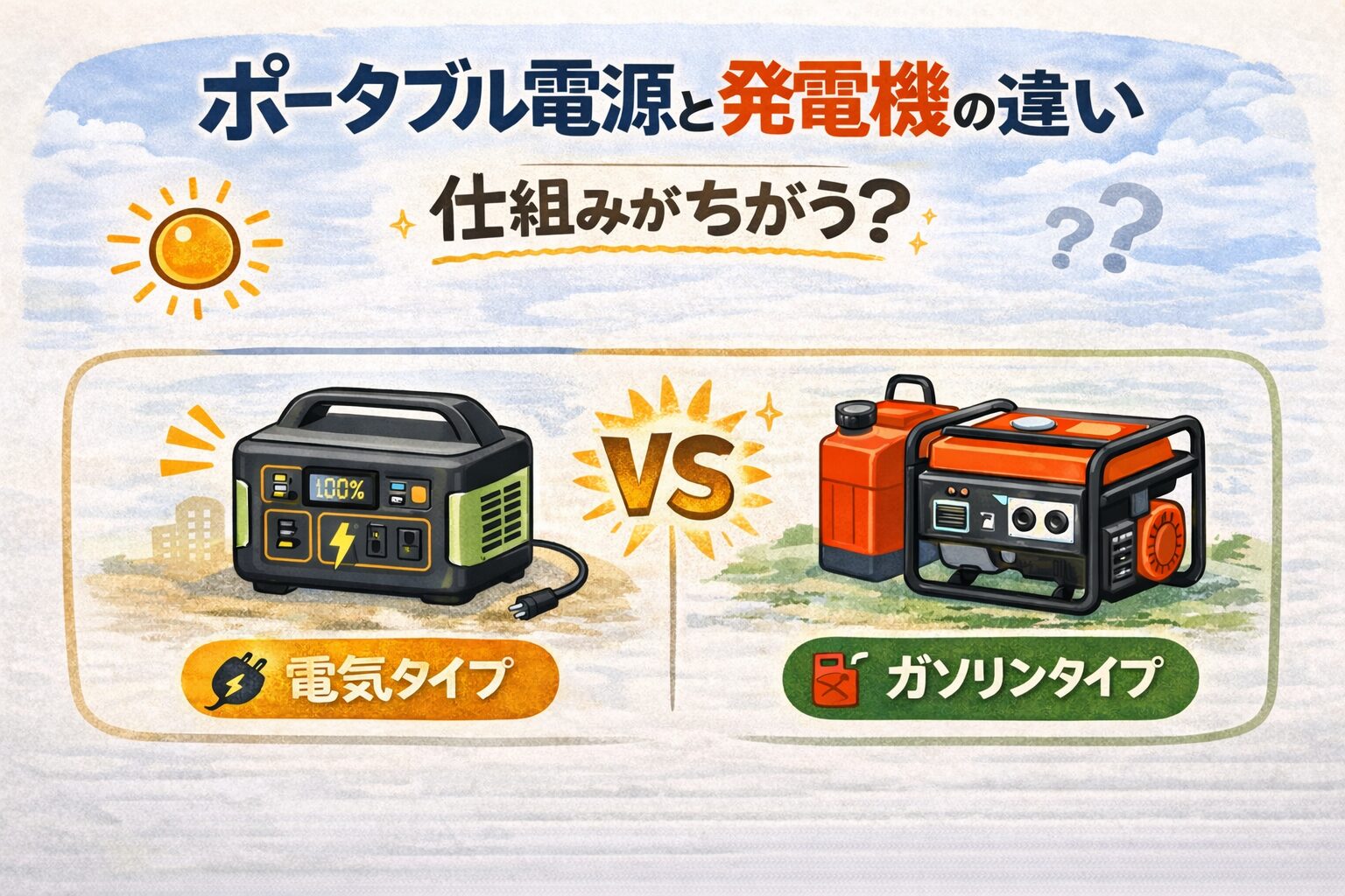 ポータブル電源と発電機の違いを